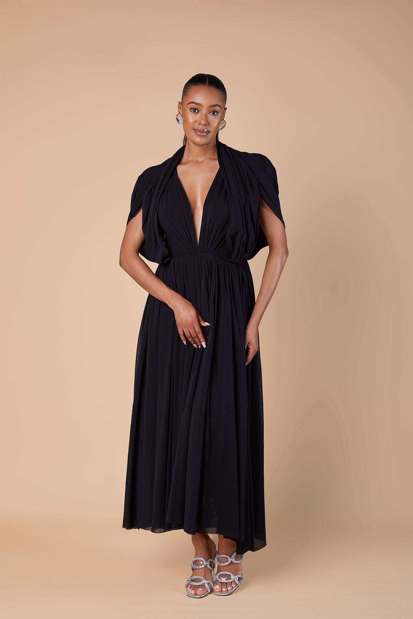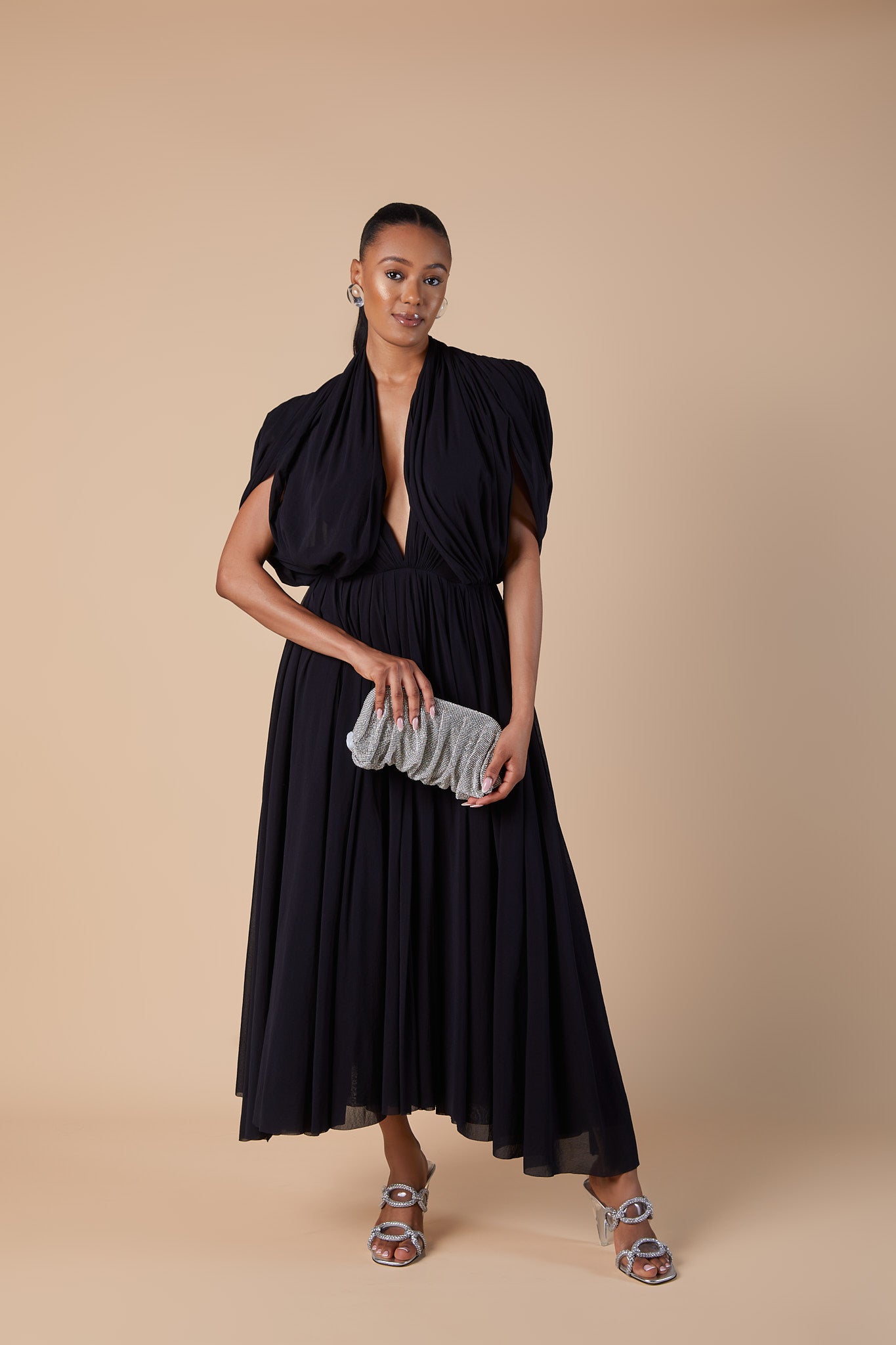 Black Serafini draped midi dress